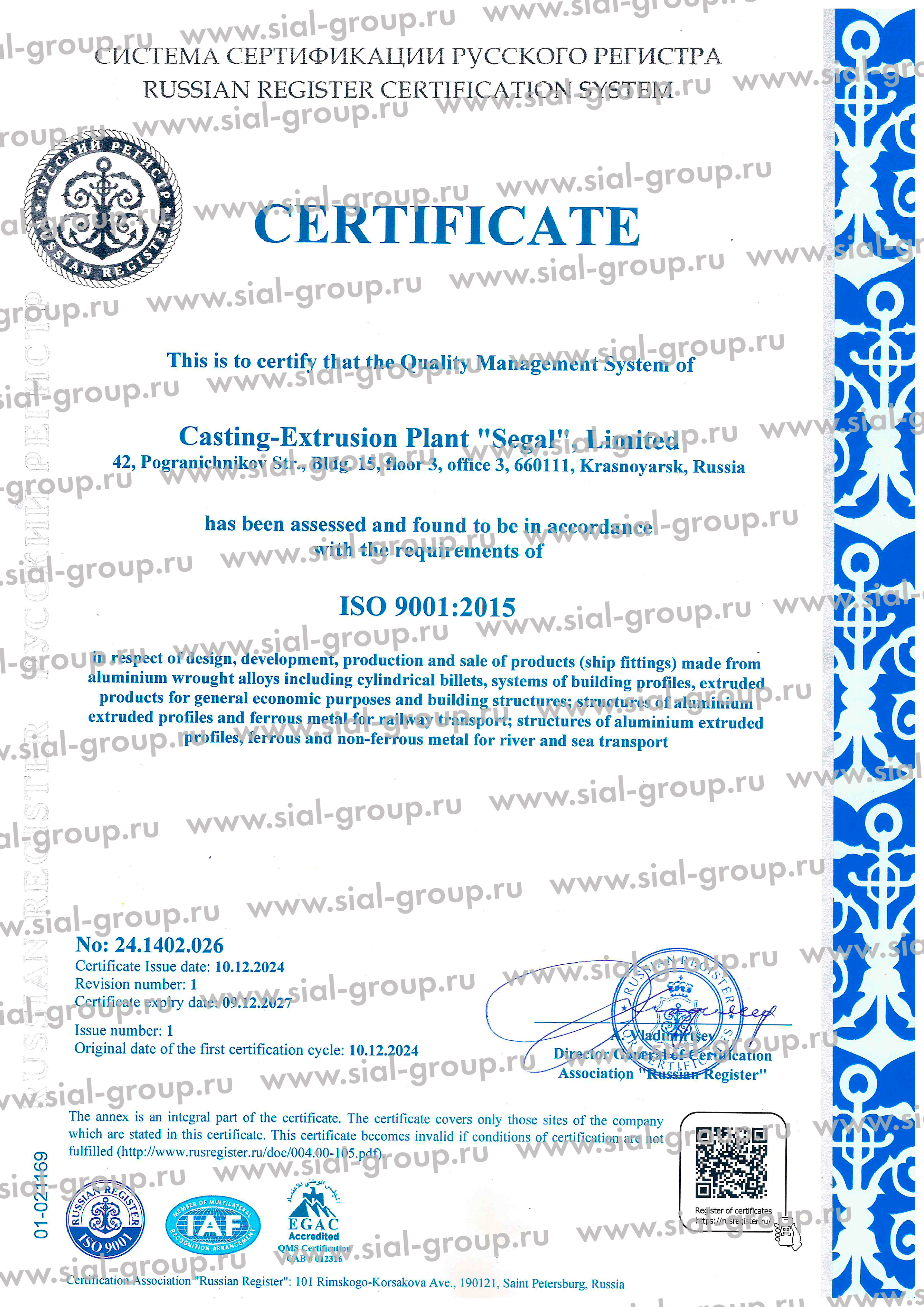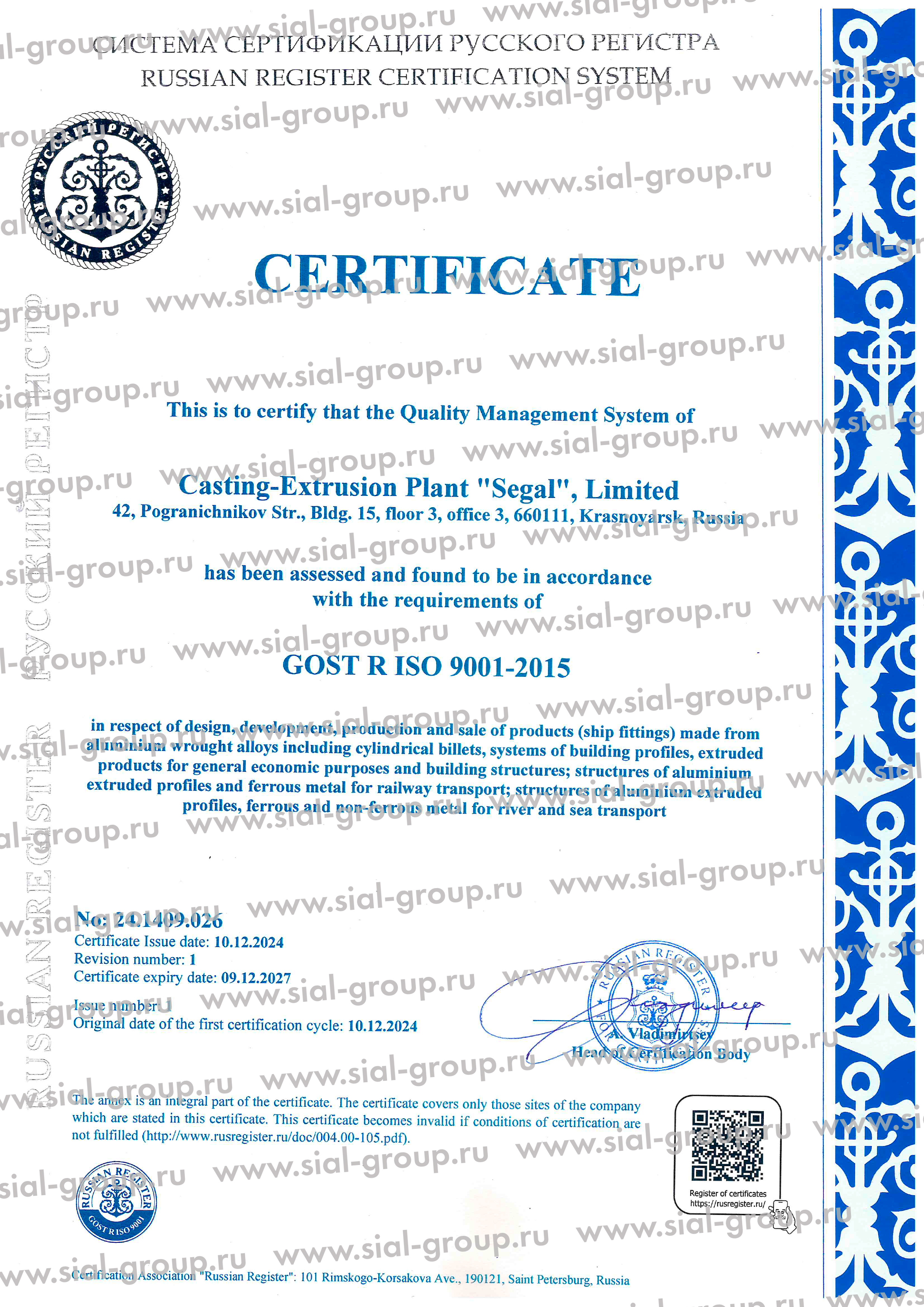 2024Certificate of conformity quality management system GOST R ISO 9001:2015