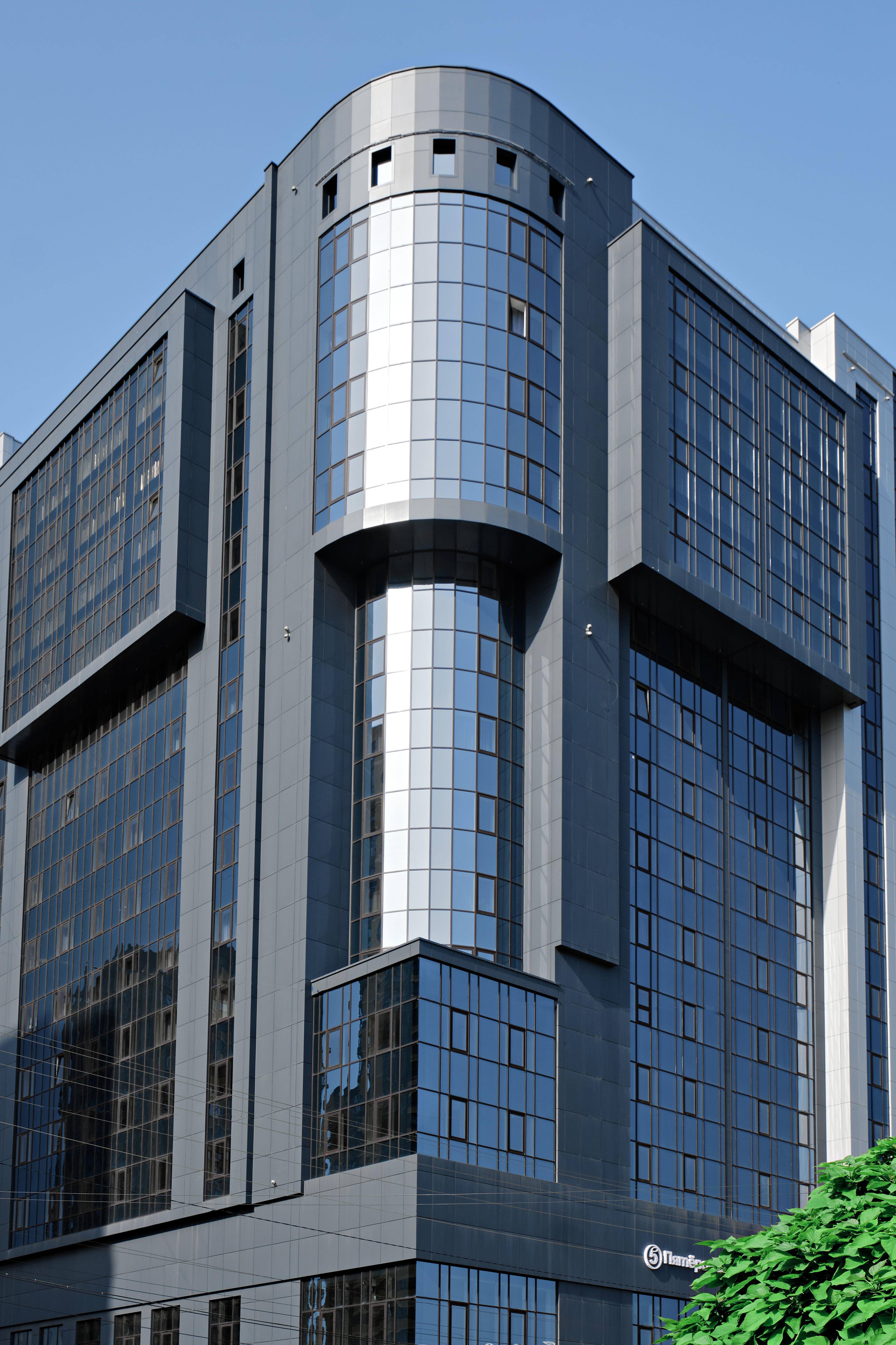 Современный облик здания создан с применением навесных фасадных систем СИАЛ МКЛ - облицовка композитными панелями